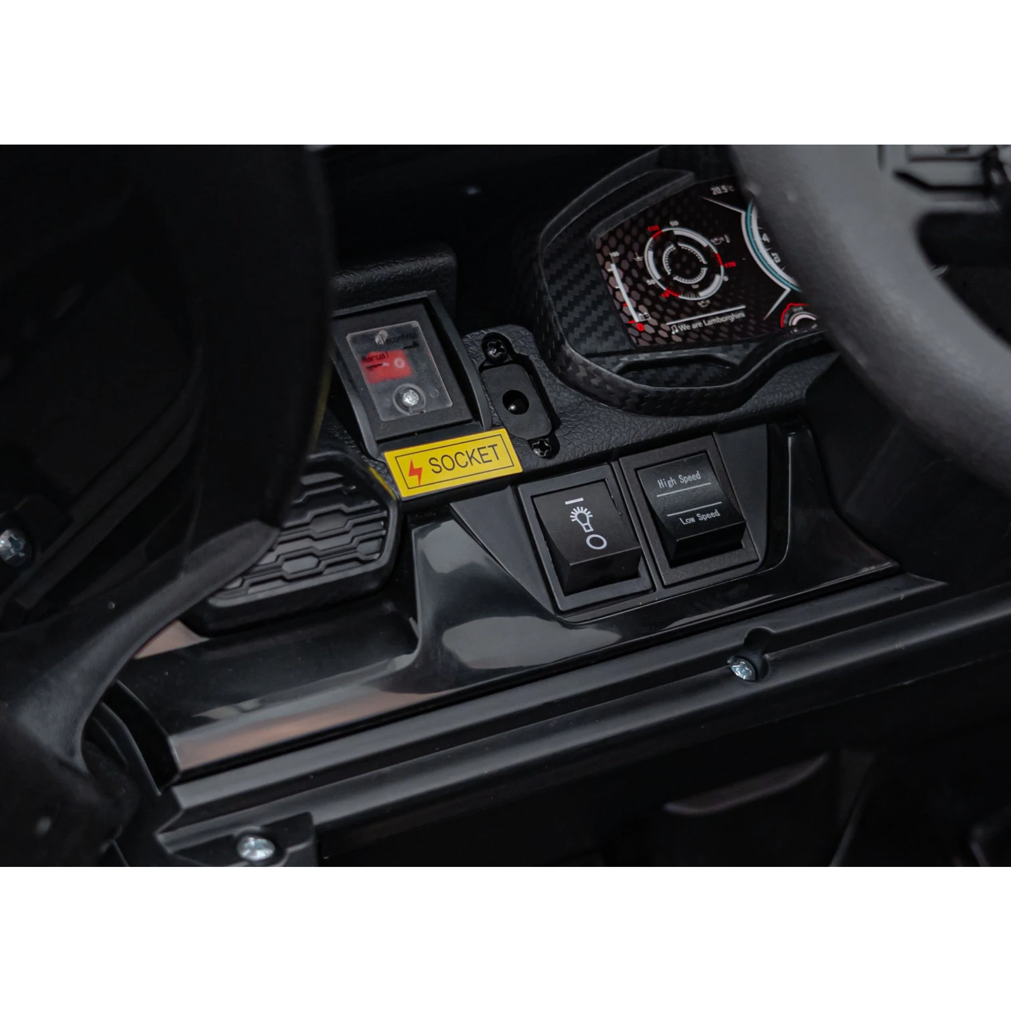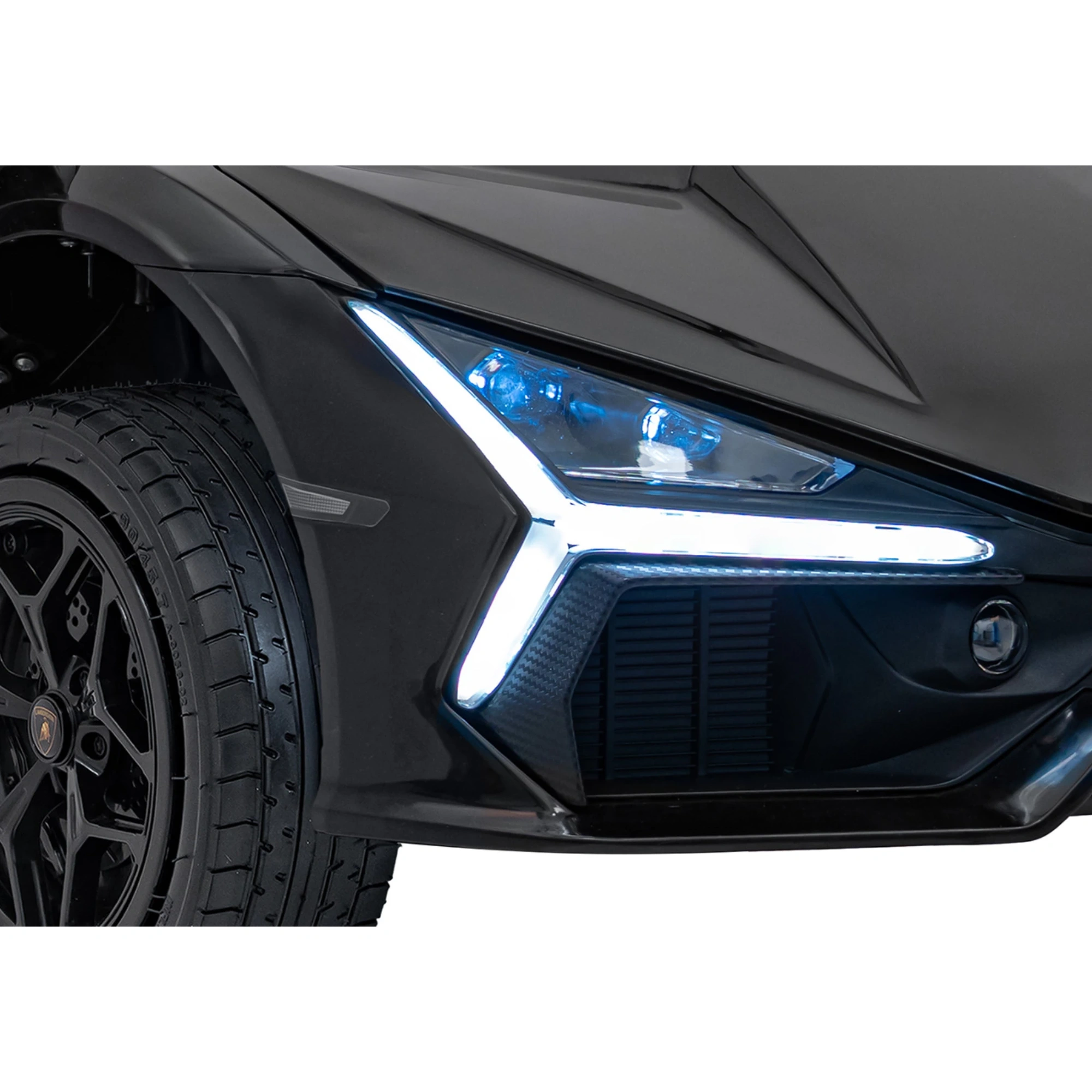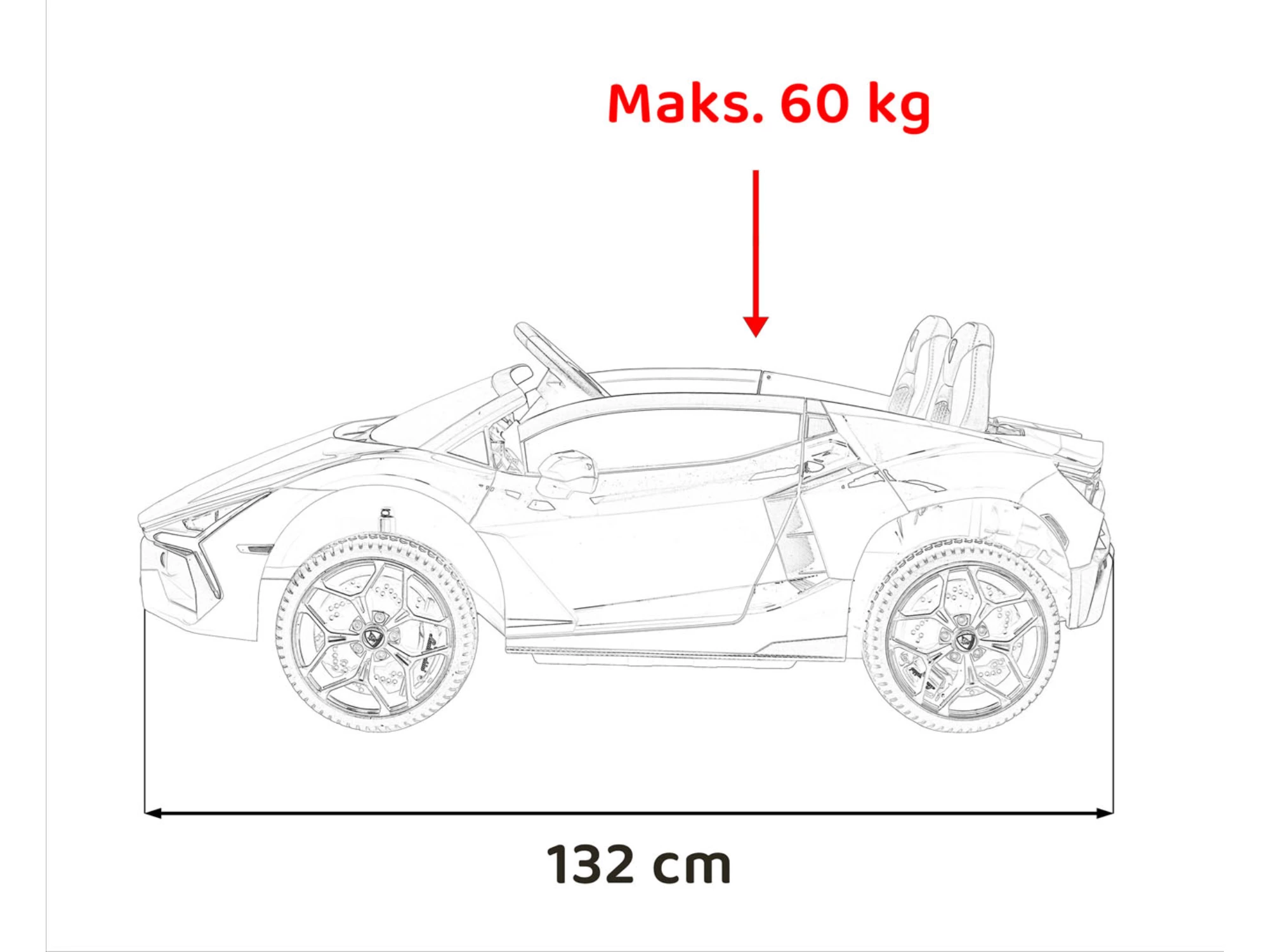 Autko na akumulator klasy premium - Lamborghini Revuelto XL STRONG z profesjonalnym bez szczotkowym silnikiem napędowym o mocy 200W 24V rozpędzające pojazd do 15km/h!. Autko jest co prawda nieco mniejsze niż jego kolega z podobnym silnikiem (Avenator) ale i tak sprawie świetne wrażenie swoją wielkością pozwalając na niezapomnianą zabawę młodszym kierowcom.