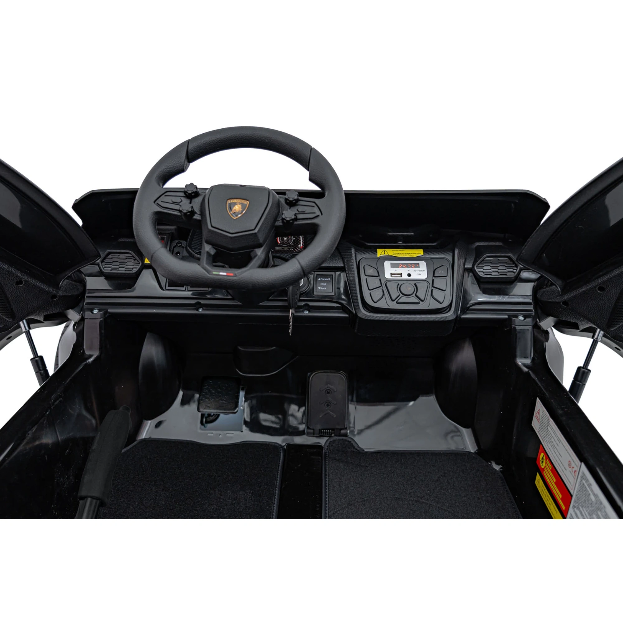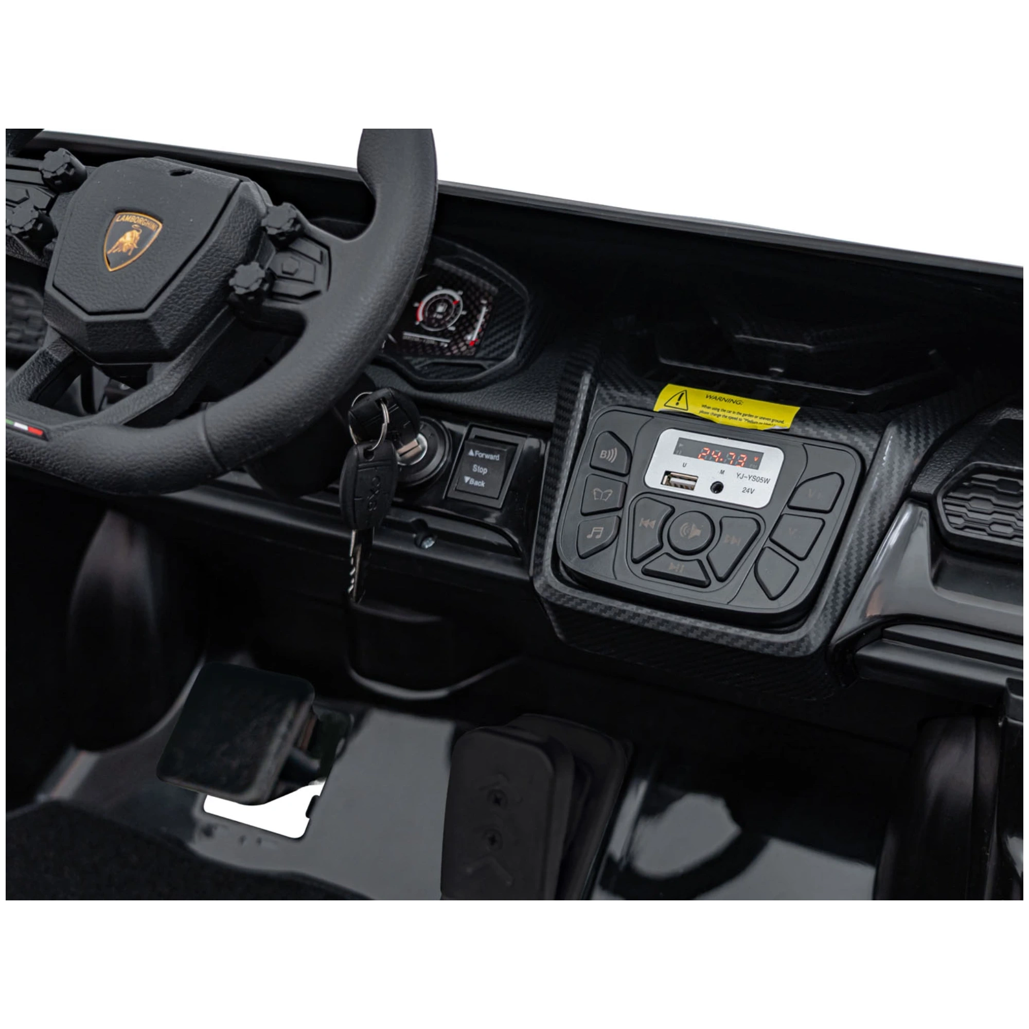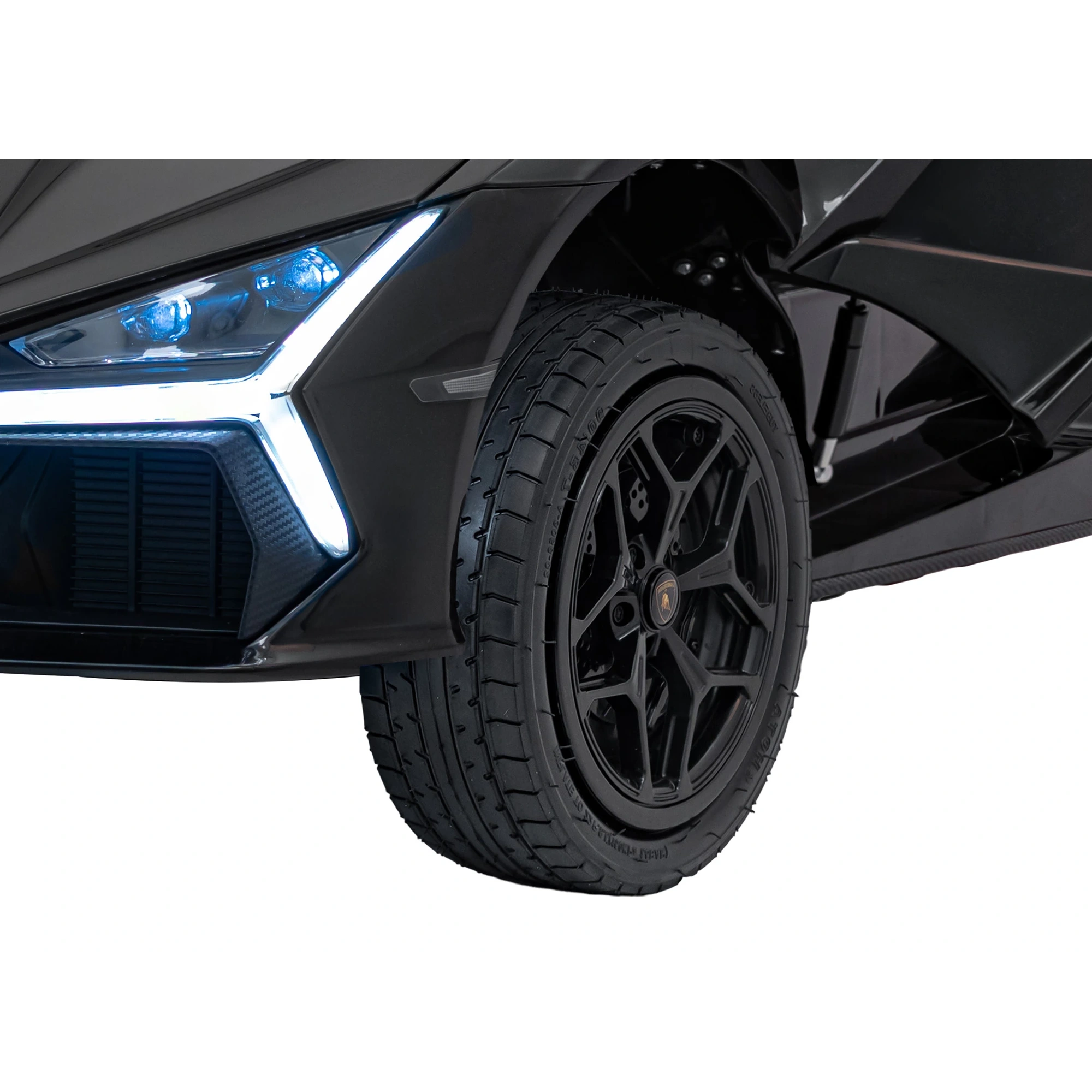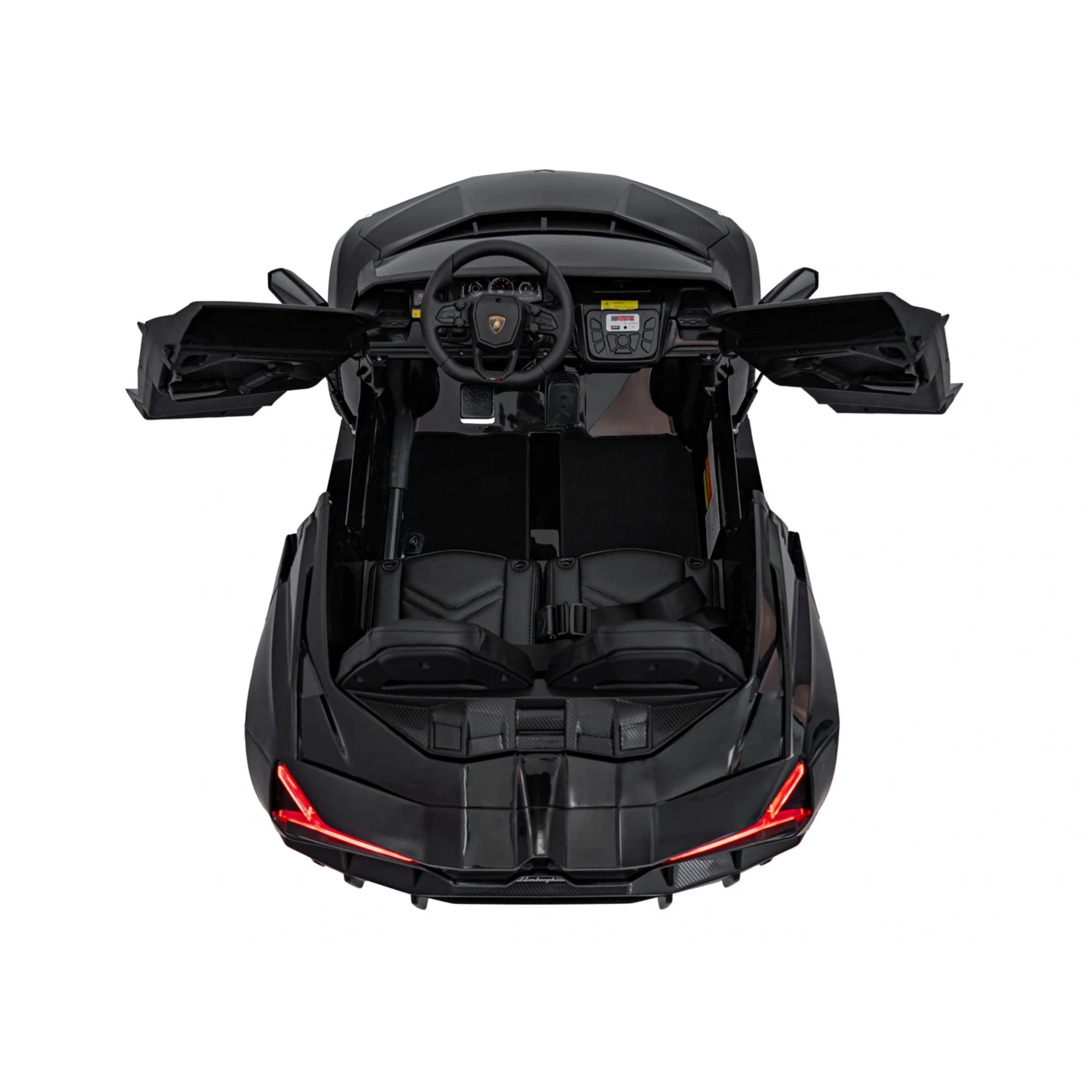 Autko na akumulator klasy premium - Lamborghini Revuelto XL STRONG z profesjonalnym bez szczotkowym silnikiem napędowym o mocy 200W 24V rozpędzające pojazd do 15km/h!. Autko jest co prawda nieco mniejsze niż jego kolega z podobnym silnikiem (Avenator) ale i tak sprawie świetne wrażenie swoją wielkością pozwalając na niezapomnianą zabawę młodszym kierowcom.