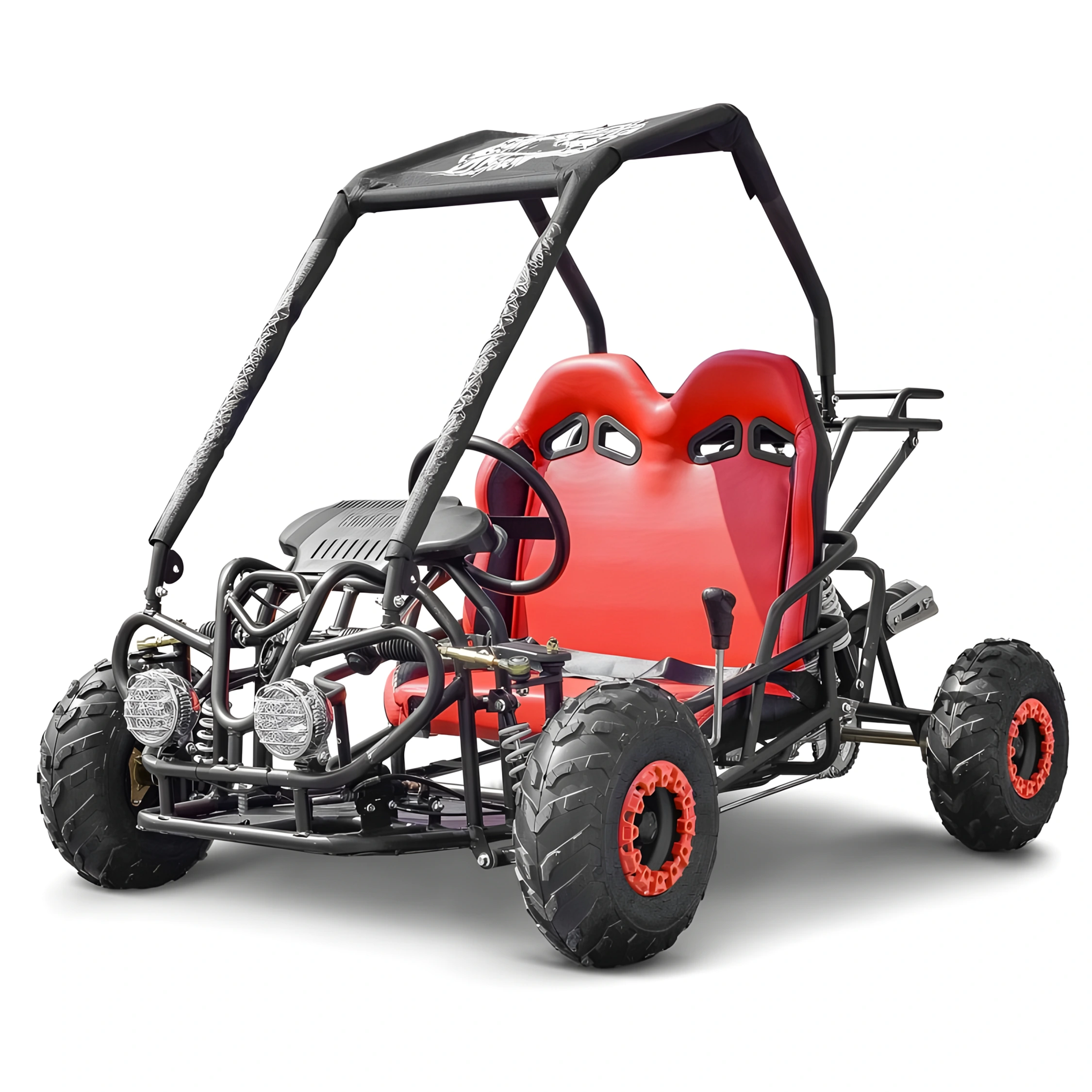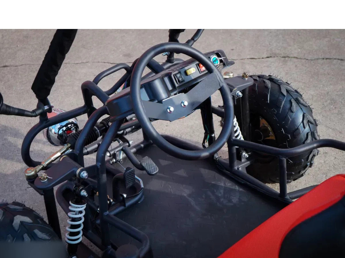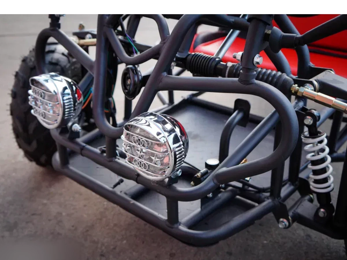 Dwuosobowe spalinowe mini buggy z silnikiem 110cc - BS 125 - dla dzieci już od 5 roku życia! - buggy off-road rozpędza się do 40km/h!, posiada dodatkowe oświetlenie ledowe, bieg wsteczny itp. Jest to jedno z najmniejszych dwuosobowych mini buggy za którego kółkiem zasiąść mogą już 6-latki!. Mocny 4-suwowy silnik pozwala zarówno na jazdę sportową jak i terenową nie dając jednocześnie mega frajdę młodym kierowcom zaczynającym przygodą z jazdą offroad.