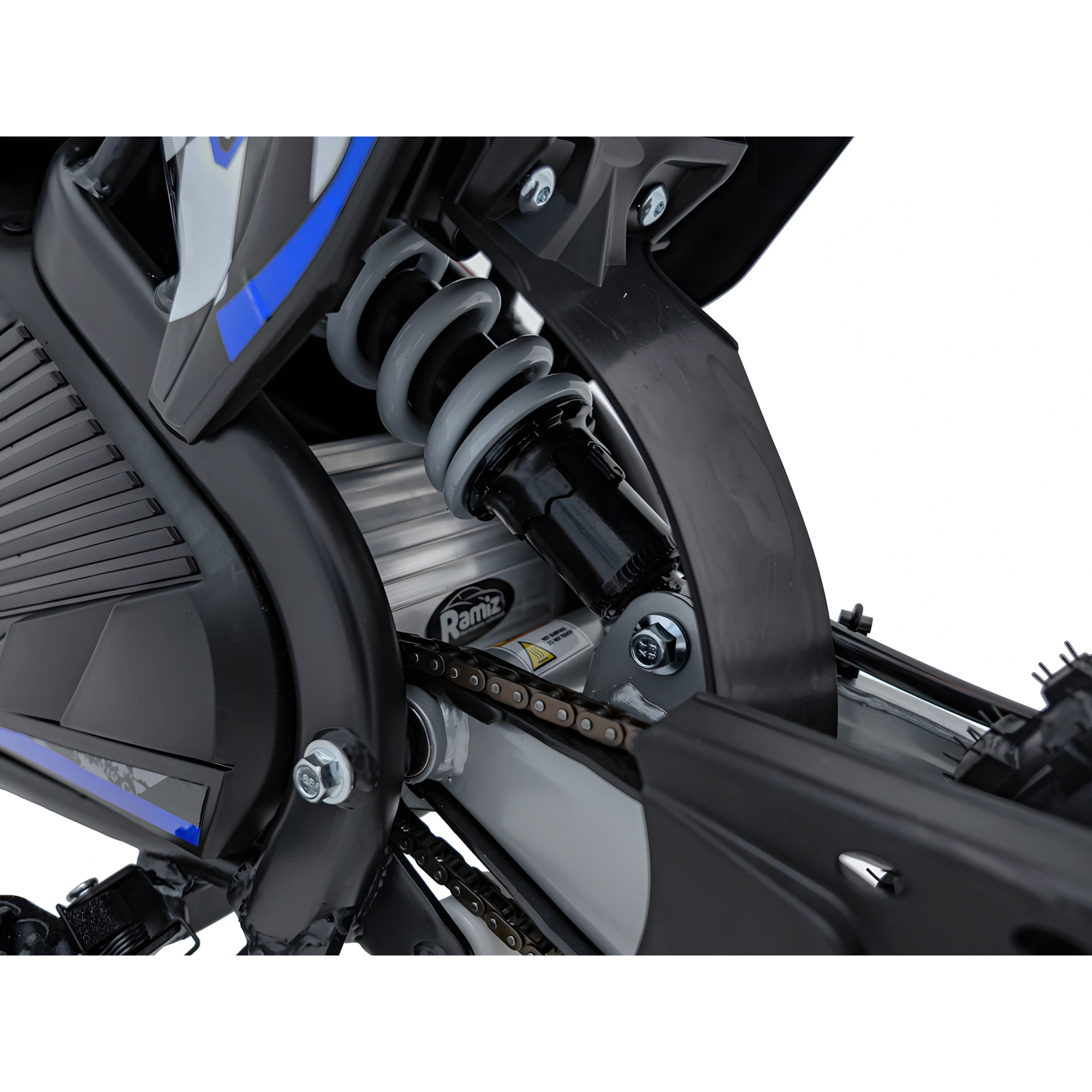 W crossiku Pit Bike 35 zastosowany płyną potencjometryczną regulację prędkości maksymalnej i dodatkowo także potencjometryczną kontrolę mocy/wolnego startu a za komfort jazdy odpowiada w pełni amortyzowana rama z możliwością regulacji tylnego amortyzatora.
