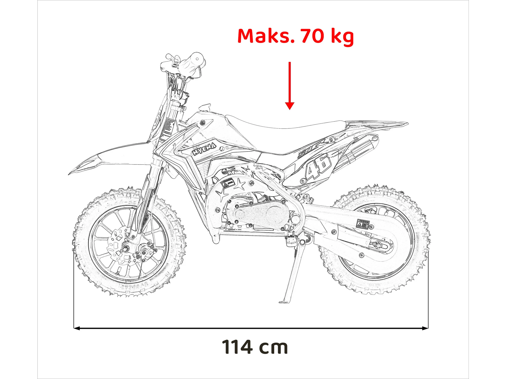 Osiągi z rozsądkiem: Mini cross rozwija prędkość do 40 km/h. Ta wartość, ograniczona ze względów prawnych, jest optymalna, by młody kierowca mógł poczuć pełnię sportowej jazdy i rozpocząć swoją przygodę z mini motor sportem crossowym.