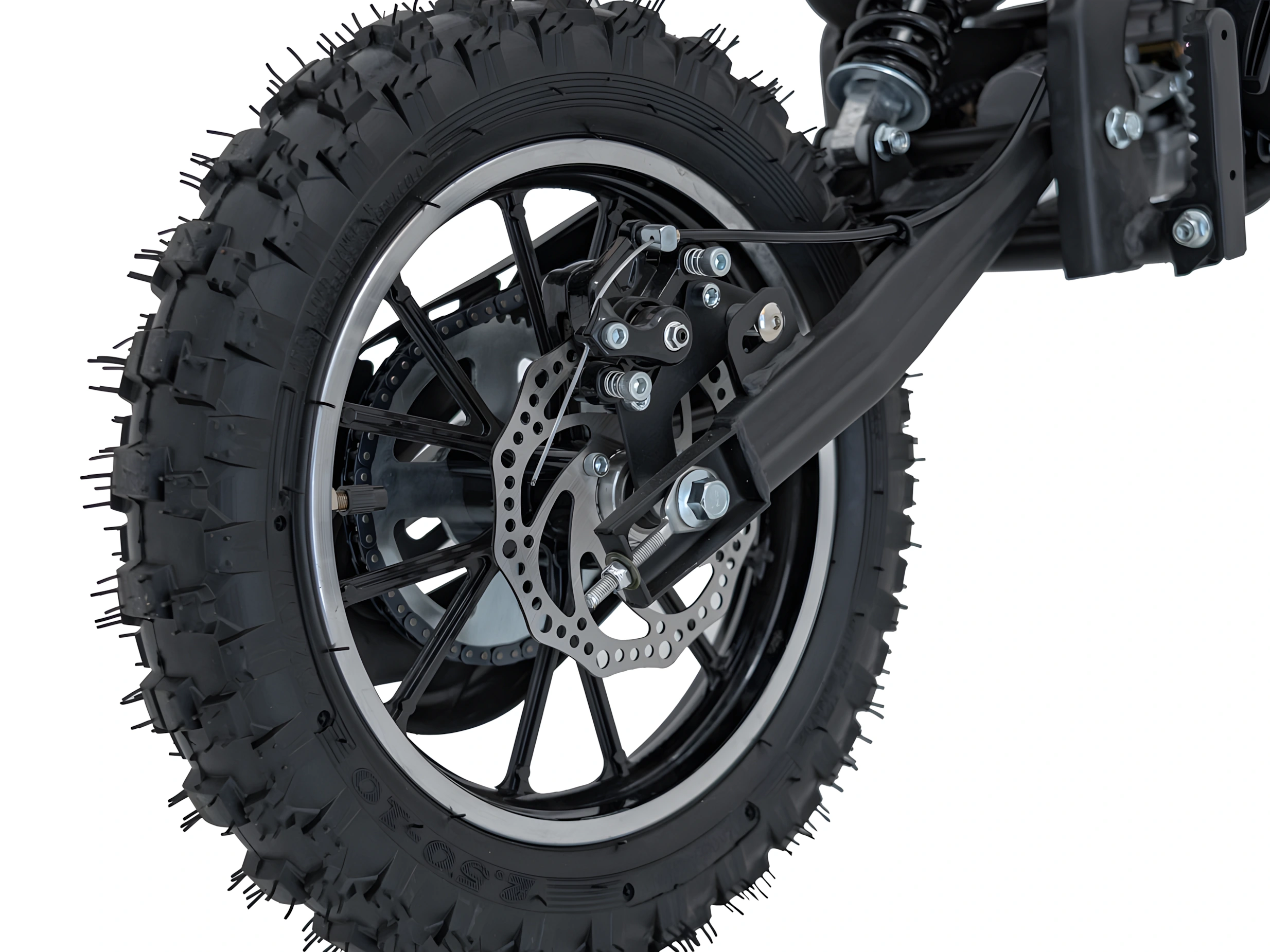 Pełne zawieszenie: w mini crossie choć podstawowym zastosowano w pełni amortyzowane zawieszenie zarówno z przodu, jak i z tyłu,