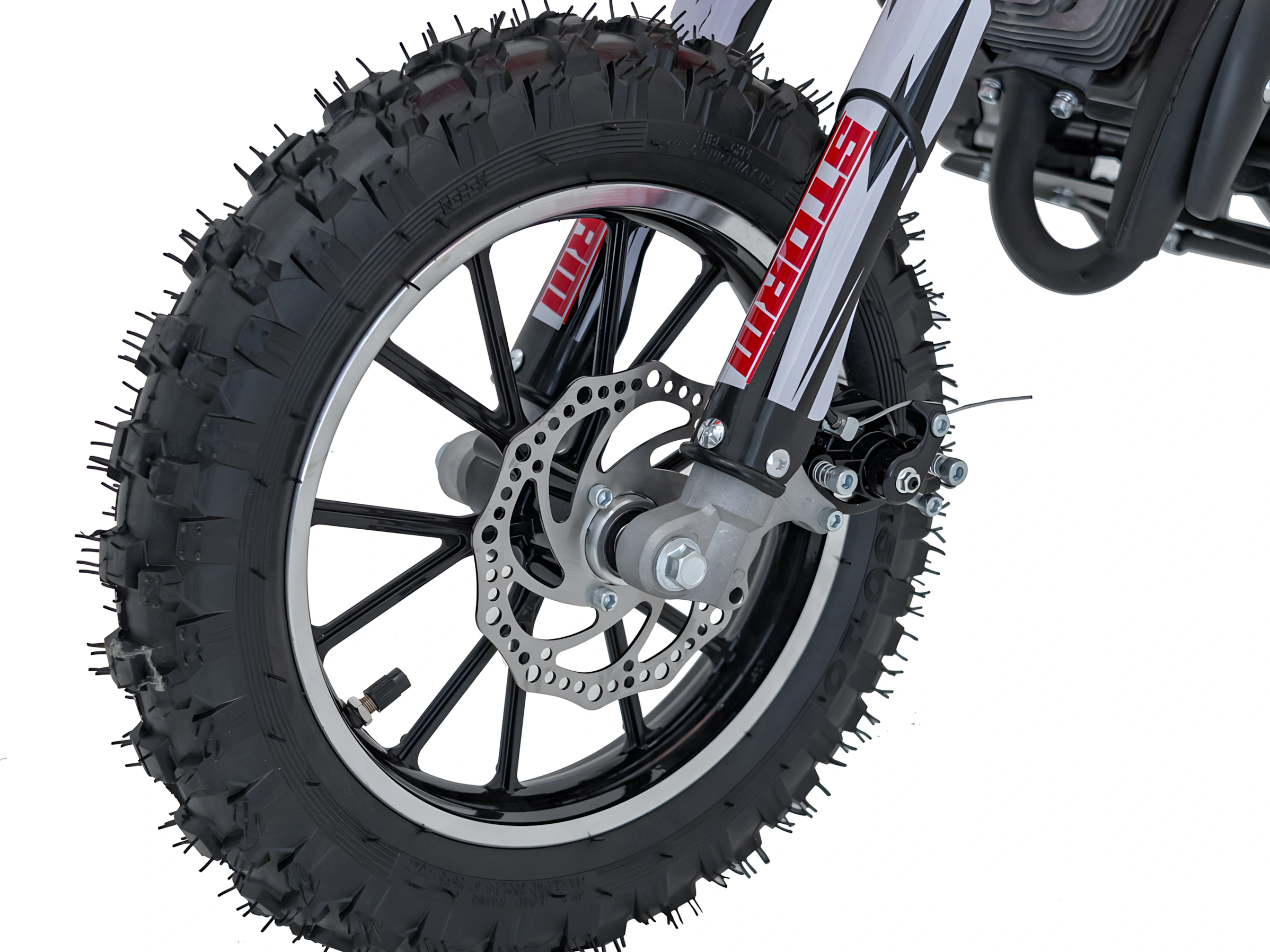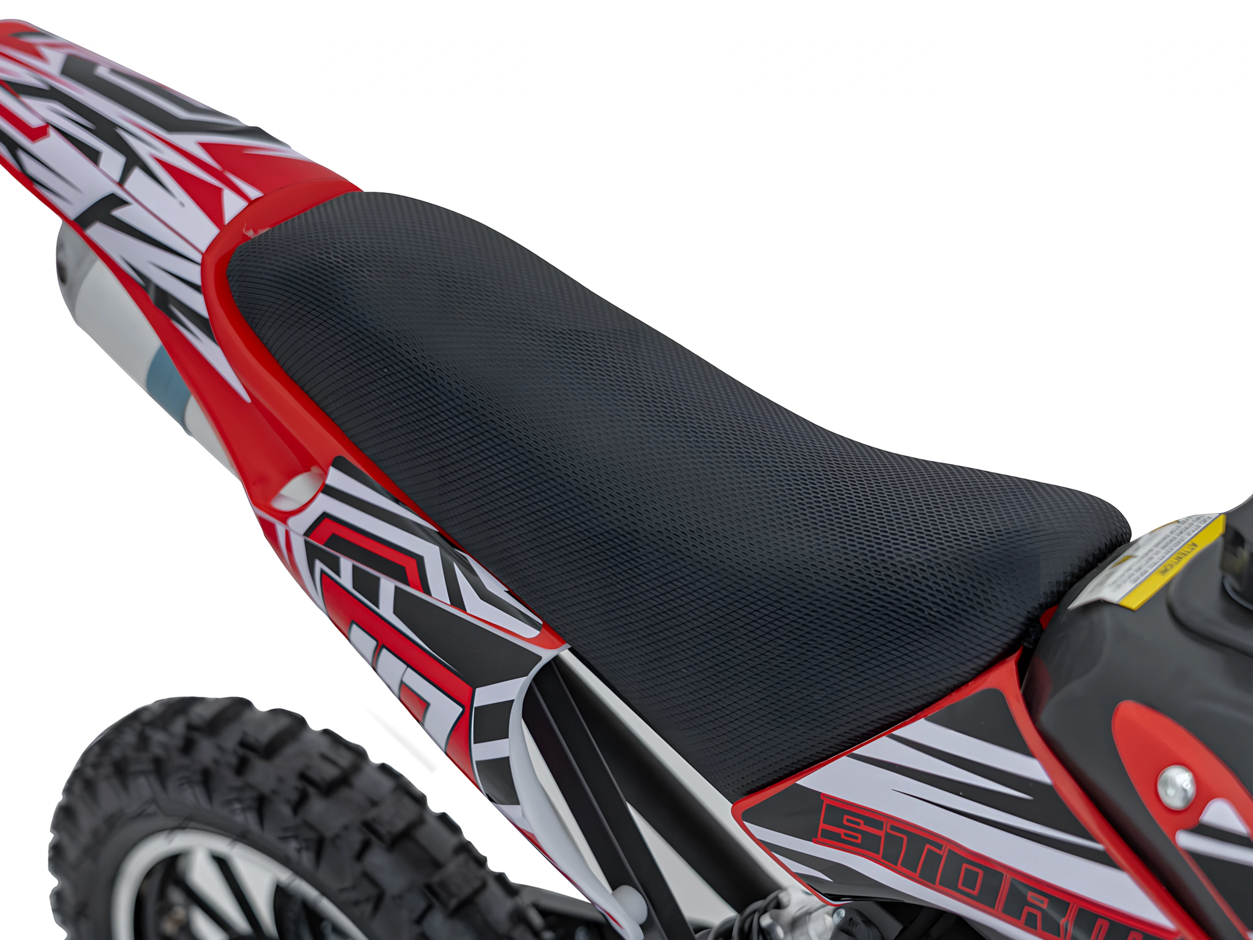 Podstawowy mini cross / pitbike Storm 49cc zaprojektowany z myślą o najmłodszych pasjonatach motoryzacji już od 4 do 8 lat (min. 105 cm wzrostu)! Model mini crossa Storm 49cc został wyposażony w silnik 49cc 2T rozpędzający crossa do 40km/h. Crossik zapewnia dynamiczną jazdę w połączeniu z automatyczną skrzynią biegów.