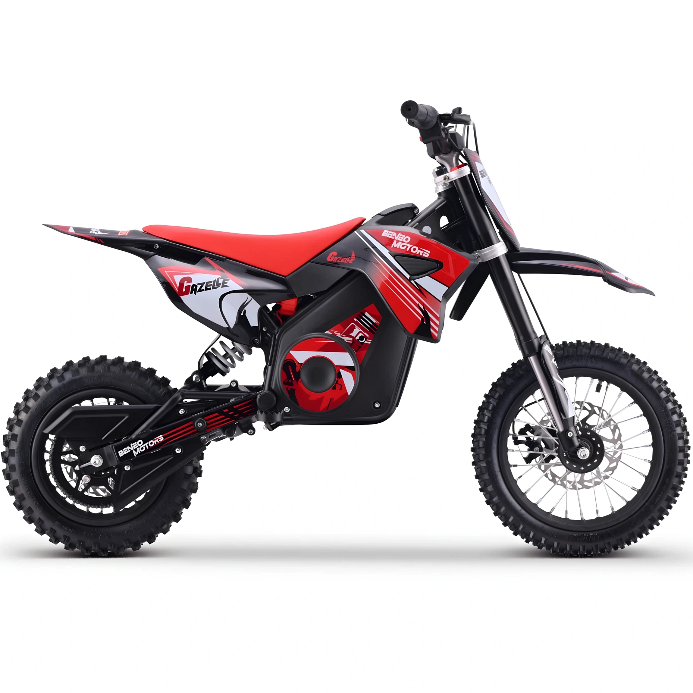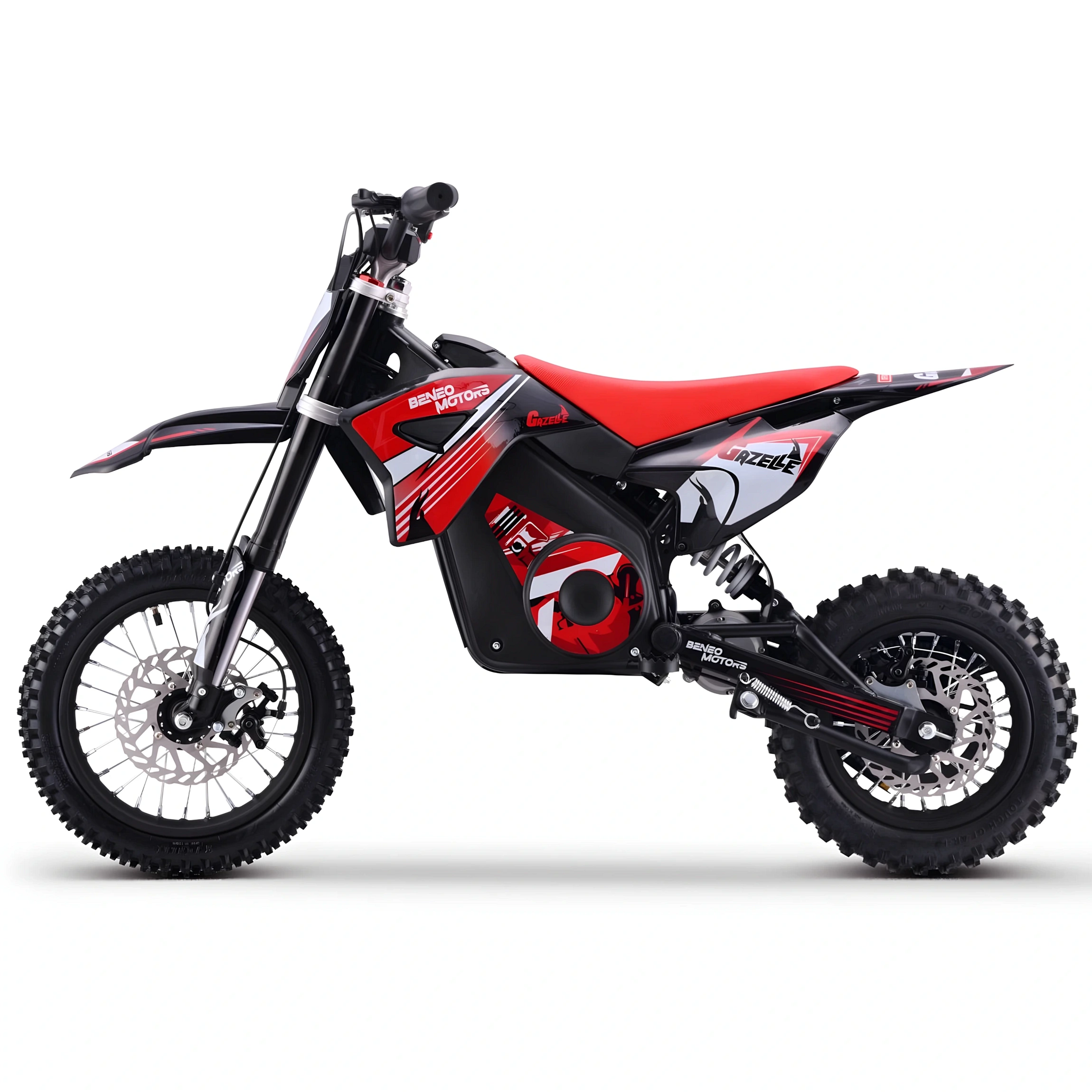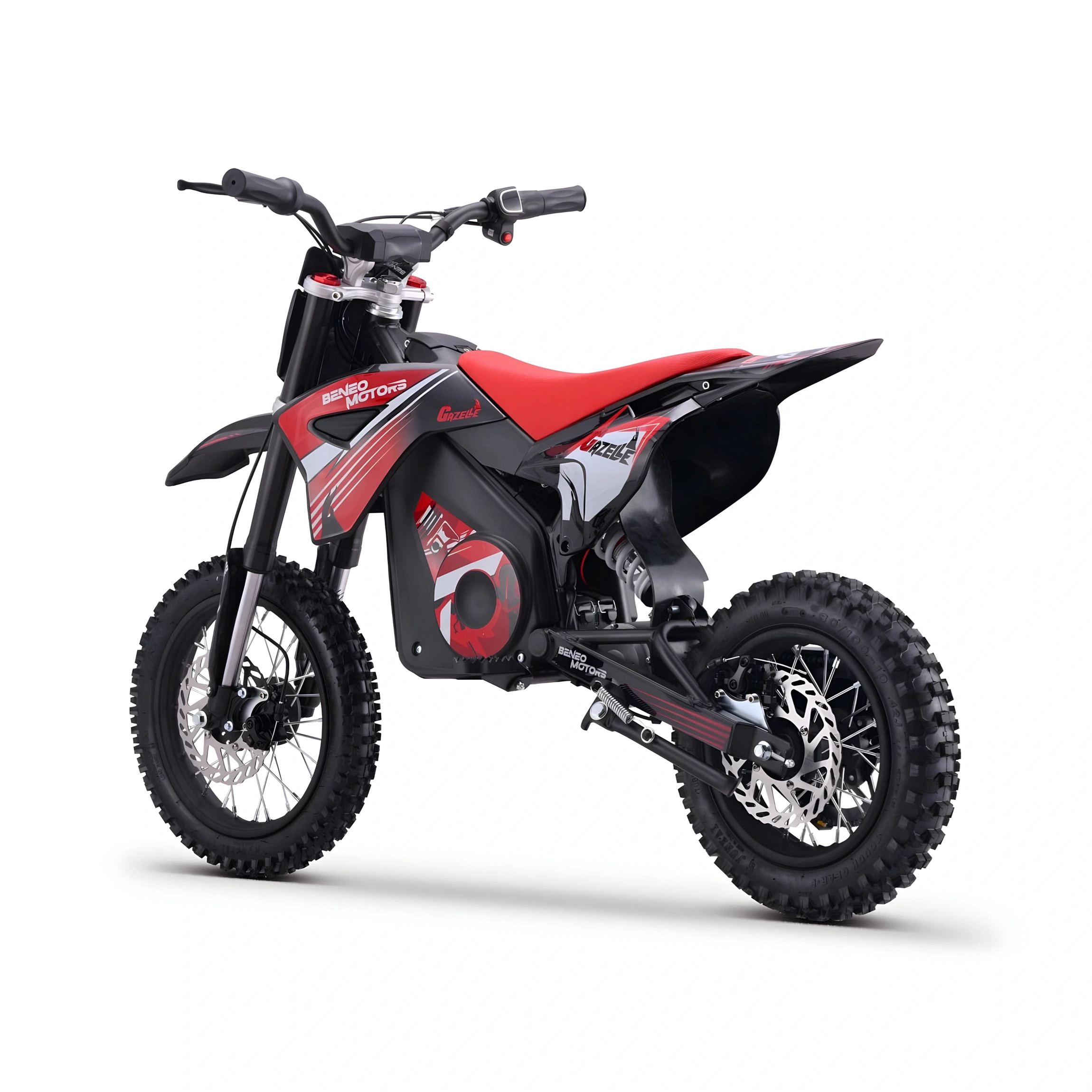Mini cross elektryczny pitbike o marki Beneo Motors model Gazelle 1000W to pojazd dla dzieci 6 do 10 lat (wzrost minimum 115cm) którego napęd stanowi bezszczotkowy silnik elektryczny 36V o mocy 1000W rozpędzający crossa do 35km/h. Dzięki akumulatorowi litowemu 36 V 12 Ah , dziecięcy crossik elektryczny oferuje zasięg do 1,5 godziny, co pozwala na dłuższe przejażdżki bez częstego ładowania.