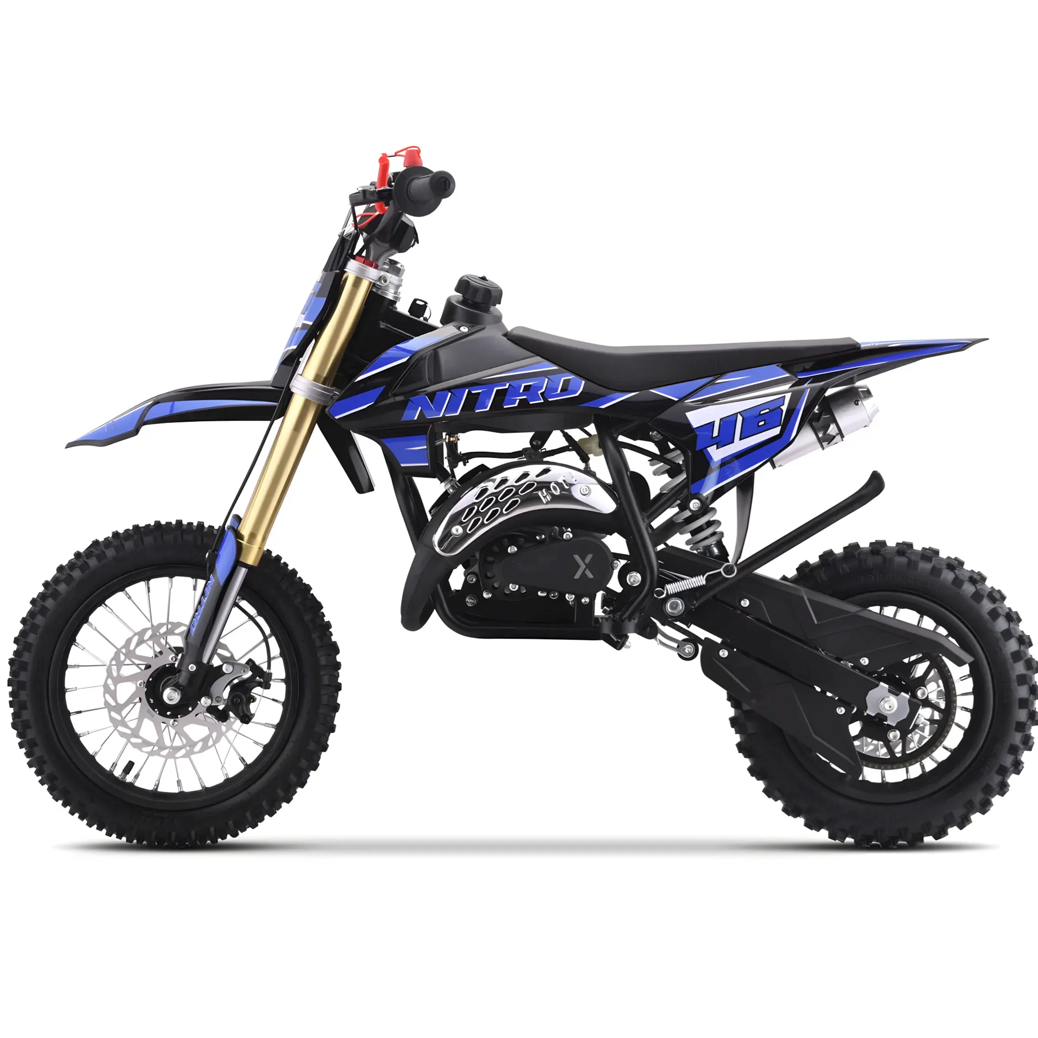 Mały crossik spalinowy w wersji mini model Nitro 60cc - to podstawowy crossik / pitbike dla dzieci od 6 do 10 lat (minimalny wzrost dziecka 115cm) napędzany silnikiem spalinowym 2T o pojemności 60cm3. Crossik osadzony na kołach 12/10 zapewnia moc i dynamikę swobodnie pozwalającą na poruszanie się w każdym terenie of-road .