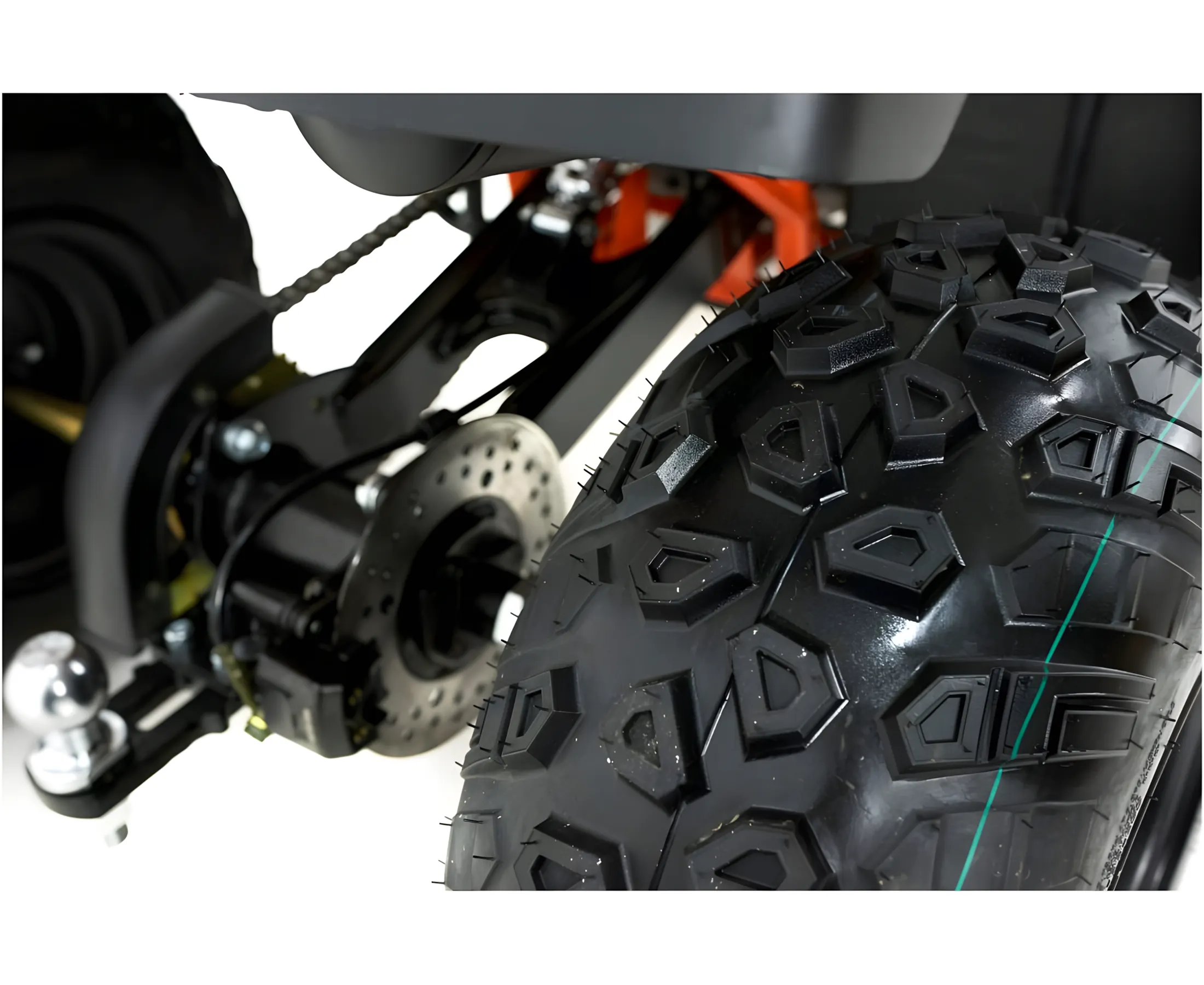 Czterosuwowy silnik quada Kayo AU150 o pojemności 150 cm3 zapewnia moc i wytrzymałość, a jednocześnie wymaga minimalnej konserwacji, co zapewnia optymalną trwałość. Z siedziskiem o wysokości 735 mm oraz kołami o średnicy 10 cali z przodu i 9 cali z tyłu, quad Kayo AU150 oferuje stabilną i przyjemną jazdę. Jego solidna konstrukcja pozwala na dodanie haka holowniczego do ciągnięcia lekkich przyczep.